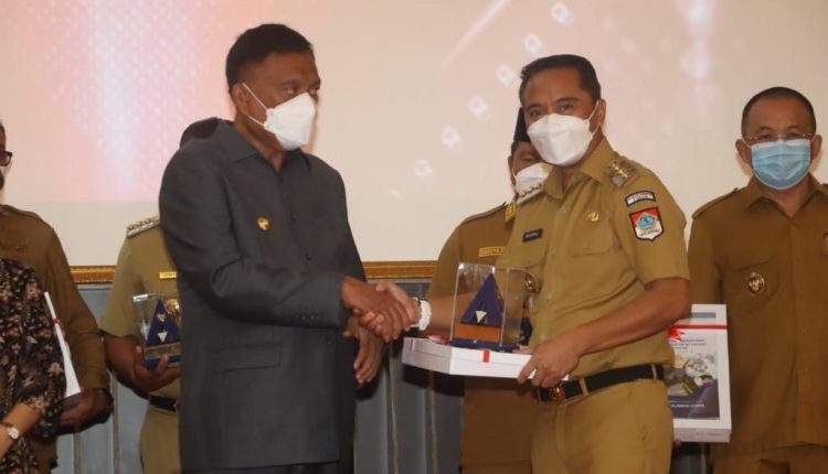 Penyerahan penghargaan diserahkan oleh Gubernur Sulut Olly Dondokambey kepada Bupati Boltim Sam Sachrul Mamonto bersamaan dengan penyerahan Daftar Isian Penyelenggaraan Anggaran (DIPA) dan buku alokasi Transfer ke Daerah (TKD) tahun 2023, yang berlangsung di Aula Gedung Keuangan Negara (GKN) lantai 6 Jalan Bethesda, Kota Manado, Senin (5/12/2022).