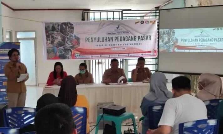 TOPIKBMR.NEWS – Dinas Perdagangan, Koperasi, dan Usaha Kecil Menengah (Disdagkop UKM) Kota Kotamobagu menggelar kegiatan penyuluhan bagi para pedagang pasar di Pasar 23 Maret. Kegiatan ini bertujuan untuk meningkatkan kesadaran dan pengetahuan para pedagang tentang pentingnya keamanan pangan di pasar.