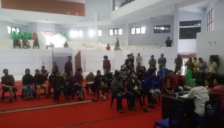 TOPIKBMR,NEWS KOTAMOBAGU –Puluhan mahasiswa Kotamobagu yang tergabung dalam kelompok Cipayung Plus yakni PMII, HMI, IMM, GMNI dan GMKI melaksanakan hearing dengan DPRD Kotamobagu Kamis (14/04/2022), diruang paripurna DPRD Kotamobagu.