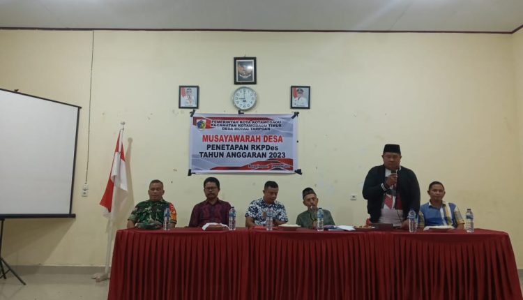 TOPIKBMR,NEWS KOTAMOBAGU – Badan Permusyawaratan Desa (BPD) dan Pemerintah desa Moyag Tampoan menggelar musyawarah penetapan Rencana Kerja Pemerintah Desa (RKPDes) tahun anggaran 2023, bertempat di aula kantor desa Moyag Tampoan, Selasa (6/12/2023).