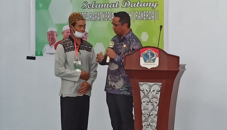 TOPIKBMR,NEWS BOLTIM – Buka Rapat kerja Daerah (Rakerda) Pimpinan Daerah Dewan Masjid Indonesia (DMI) Kabupaten, Senin (20/12),Bupati Bolaang Mongondow Timur (Boltim) Sam Sachrul Mamonto Hadiahi Paket Umroh kepada salah satu peserta.