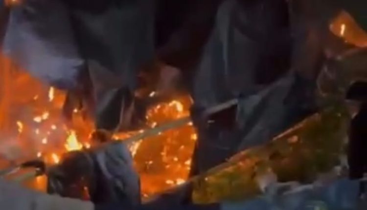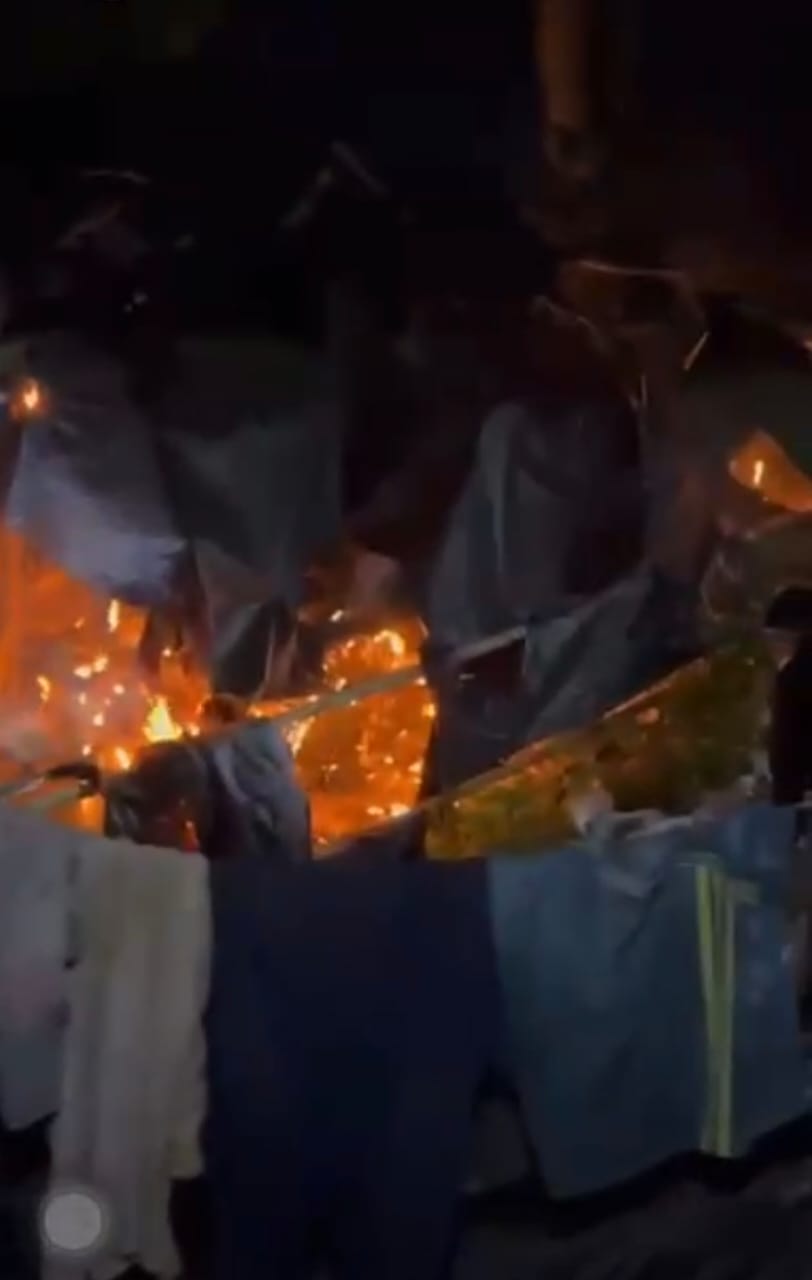 Aksi pembakaran itu menyebabkan sejumlah tenda lapak pekerja dan bahan barang barang hangus terbakar.