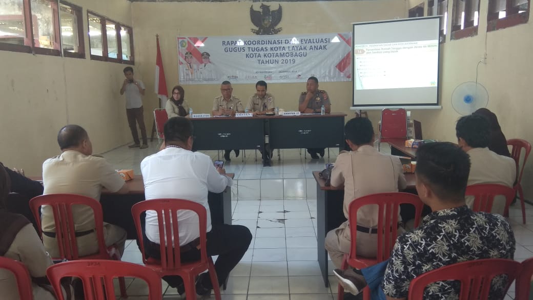 TOPIKBMR.CO,KOTAMOBAGU— Pemerintah Kota (Pemkot) melalui Dinas Pemberdayaan Perempuan dan Perlindungan Anak (P3A) Kotamobagu menggelar kegiatan Rapat Koordinasi (Rakor) dan Evaluasi Gugus Tugas Kota Layak Anak (KLA) Kotamobagu tahun 2019, yang diselenggarakan di Aula Kantor DP3A Kotamobagu, Senin (09/12/2019).