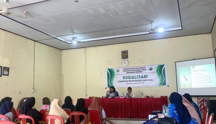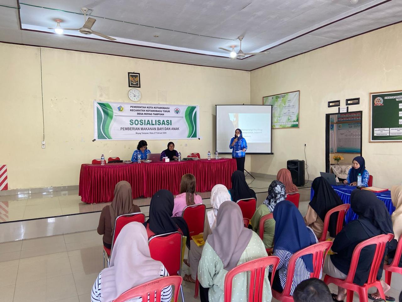 Materi sosialisasi dibawakan oleh pihak Dinkes Kota Kotamobagu yang menjelaskan prinsip-prinsip PMBA seperti frekuensi makan, jumlah, tekstur, dan keragaman makanan sesuai usia anak.