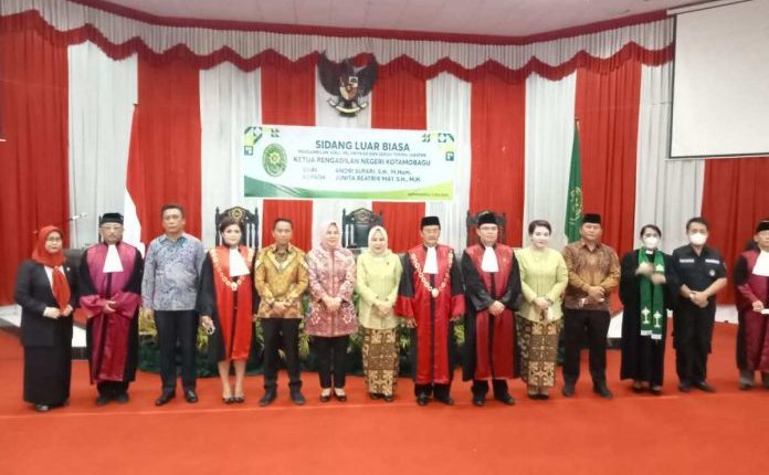 TOPIKBMR,NEWS BOLTIM –Bupati Bolaang Mongondow Timur (Boltim) Sam Sachrul Mamonto S.Sos M.Si, menghadiri sidang luar biasa pengambilan janji, pelantikan dan serah terima jabatan Ketua Pengadilan Negeri (PN) Kotamobagu dari Andri Sufari SH M.Hum, kepada Junita Beatrix MA’I SH MH.
