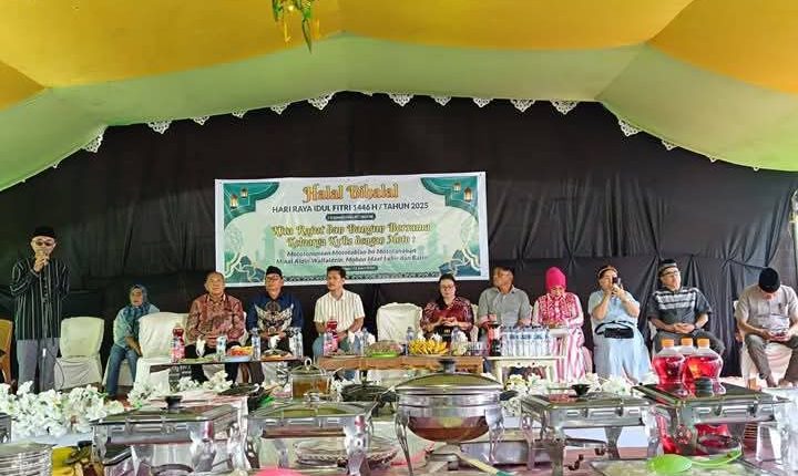 KOTAMOBAGU – Penjabat Sangadi Desa Moyag Tampoan Kori Manoppo beserta perangkat desa menghadiri perayaan  Halal Bihalal di Desa Moyag Tampoan Kecamatan Kotamobagu Timur, (12/4/2025).