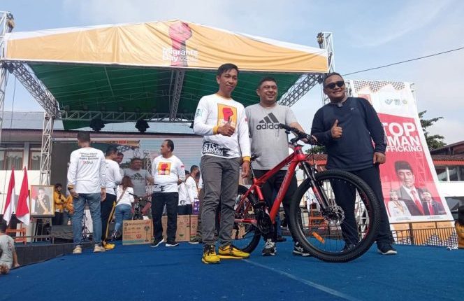 Dalam kegiatan yang diikuti oleh ribuan orang ini, BP2MI turut serta membagikan berbagai macam Doorprize bagi peserta jalan sehat dan senam zumba, mulai dari belasan sepeda, televisi, telepon seluler, serta berbagai hadiah lainnya.