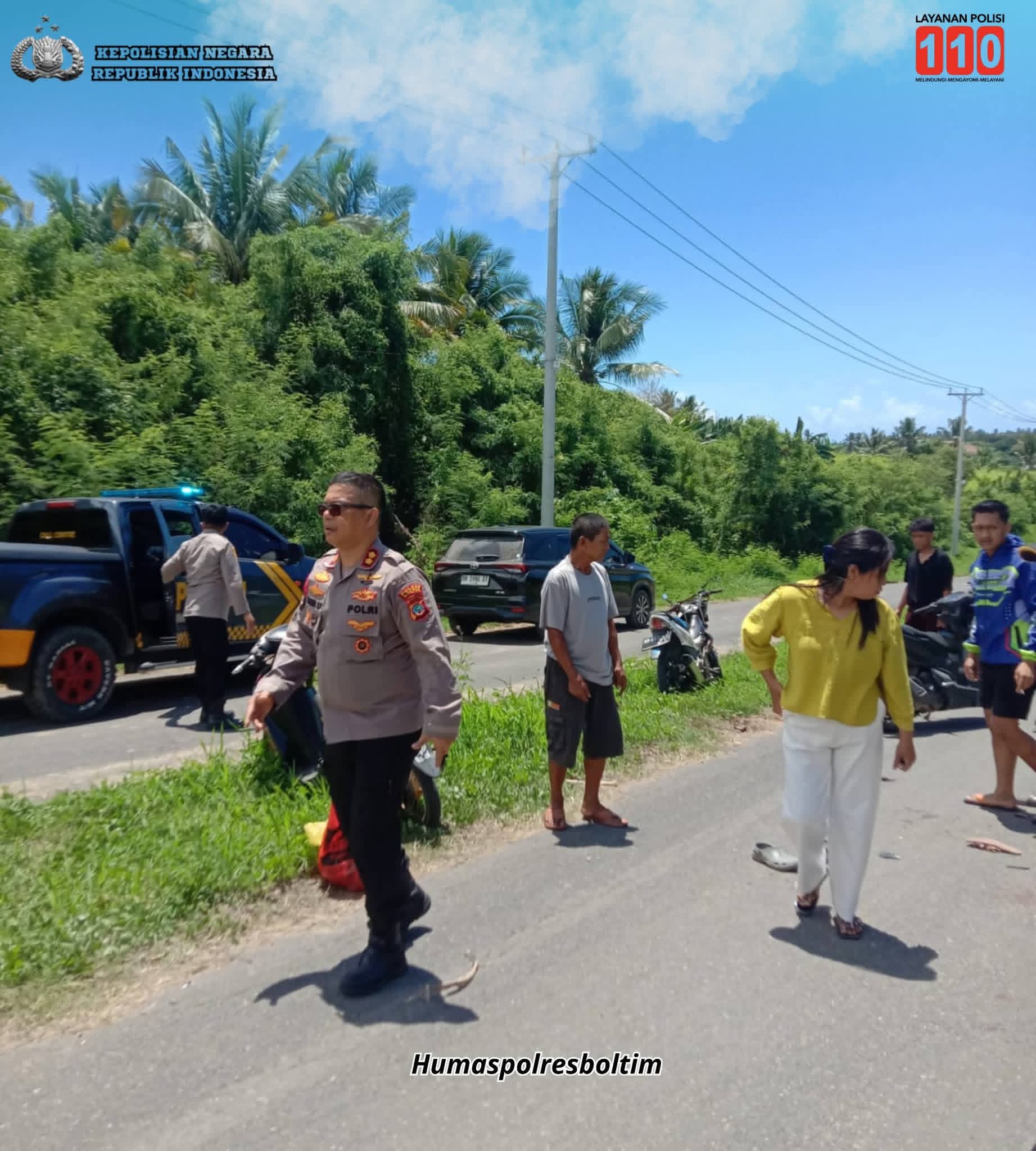 Tak berselang lama, personel Satuan Lalu Lintas Polres Boltim tiba di lokasi dan langsung melakukan pengamanan tempat kejadian perkara (TKP), mengatur arus lalu lintas, serta melakukan olah TKP dan pengumpulan keterangan saksi.