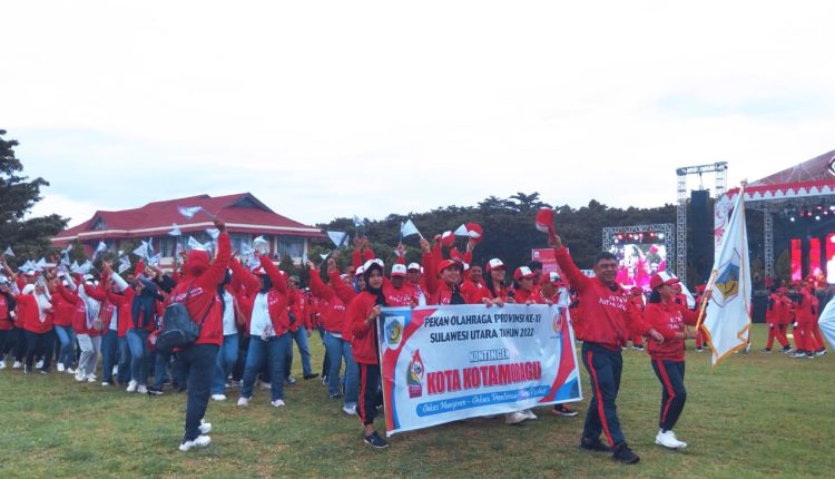 TOPIKBMR,NEWS BOLMONG – Ketua KONI Kotamobagu Meiddy Makalalag memimpin langsung defile kontingen Kota Kotamobagu yang terdiri dari Atlet dan official pada saat pembukaan Pekan Olahraga Provinsi (Polprov) Sulawesi Utara Tahun 2022, Senin (14/11/2022) di Kabupaten Bolmong.
