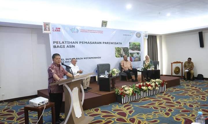 TOPIKBMR.NEWS,KOTAMOBAGU — Wakil Wali Kota Kotamobagu, Nayodo Koerniawan membuka kegiatan Pelatihan Pemasaran Pariwisata bagi ASN, yang digelar Dinas Kebudayaan dan Pariwisata (Disbudpar) Kotamobagu berkerjasama dengan Dinas Pariwisata Sulawesi Utara. Selasa, (12/7/2022) di Hotel Sutanraja.