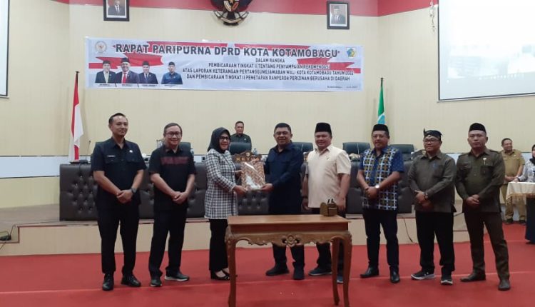 TOPIKBMR.NEWS KOTAMOBAGU – Dewan Perwakilan Rakyat Daerah (DPRD) Kota Kotamobagu Mengelar Rapat Paripurna Dalam Rangka Pembicaraan Tingkat II Tentang Penyampaian Rekomendasi Atas Laporan Keterangan PertanggungJawaban(LKPJ) Wali Kota Kotamobagu Tahun 2022 dan Pembicaraan Tingkat II Penetapan Ranperda Perizinan Berusaha Daerah (PBD), Senin 5 Juni 2023.