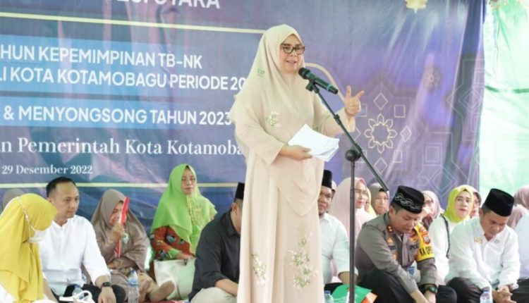 TOPIKBMR.NEWS,KOTAMOBAGU – WaliKota Kotamobagu, Ir. Hj. Tatong Bara menghadiri Tabligh Akbar dalam rangka Syukuran 4 Tahun Kepemimpinan Ir. Hj, Tatong Bara dan Nayodo Koerniawan, S.H, (TB – NK) dan mengakhiri Tahun 2022 serta menyongsong Tahun 2023, yang dilaksanakan Pengurus Daerah Badan Kontak Majelis Taklim (BKMT) Kota Kotamobagu dan Pemerintah Kota Kotamobagu, Kamis (29/12/2022).