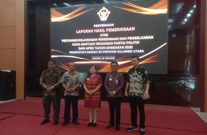 TOPIKBMR.NEWS, KOTAMOBAGU -Pemerintah Kota Kotamobagu menerima Laporan Hasil Pemeriksaan (LHP) atas Pertanggungjawaban Penerimaan dan Pengeluaran Dana Bantuan Partai Politik Tahun anggaran 2022 dari Badan Pemeriksa Keuangan (BPK) Republik Indonesia Perwakilan Sulawesi Utara, Jumat (16/6/2023).