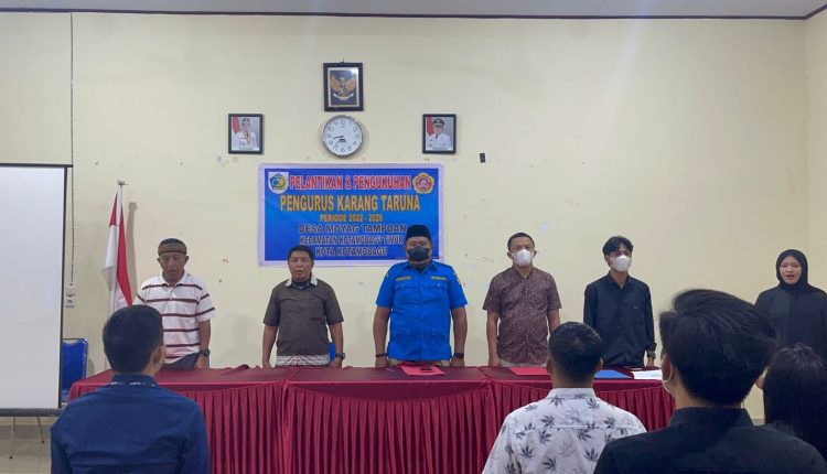 TOPIKBMR,NEWS KOTAMOBAGU – Samsuri Mamonto SP Penjabat Sangadi (Kepala Desa,red) Desa Moyag Tampoan Kecamatan Kotamobagu Timur, melantik pengurus Karang Taruna ‘Dugi Dugian’ Desa Moyag Tampoan, Kecamatan Kotamobagu Timur Masa Bhakti 2022-2026.