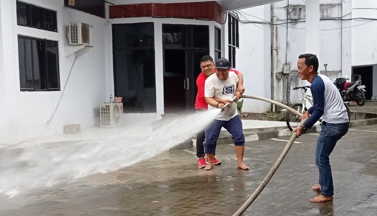 Pantauan awak media, saking kuatnya arus air yang disemprotkan dari tangki mobil pemadam kebakaran, sehingga perlu dua tenaga menahan selang air tersebut. Tak tanggung-tanggung dua politisi muda Kotamobagu ini turun langsung membersihkan halaman kantor DPRD Kotamobagu.