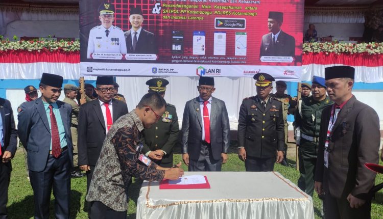 TOPIKBMR.NEWS, KOTAMOBAGU – Pj. Wali Kota Kotamobagu, Dr. Drs. Hi. Asripan Nani, M.Si., secara resmi meluncurkan aplikasi inovatif bernama “SIAP TERTIB” pada acara yang digelar di Lapangan Olahraga Desa Kopandakan Satu, Jumat (10/11/2023). Acara peluncuran ini dihadiri oleh perwakilan Forkopimda, para Asisten, serta pimpinan OPD dilingkungan Pemerintah Kota Kotamobagu.