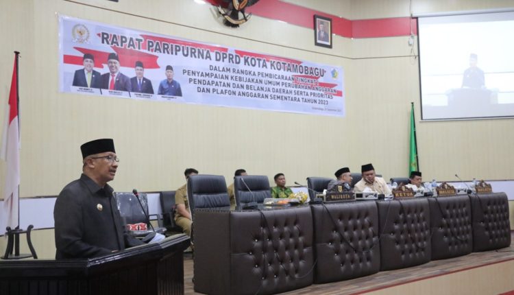 TOPIKBMR.NEWS, KOTAMOBAGU — Penjabat (Pj) Wali Kota Kotamobagu, Dr. Drs. H. Asripan Nani, M.Si., menyampaikan Kebijakan Umum Perubahan Anggaran serta Prioritas dan Plafon Anggaran Sementara (KUPA-PPAS) APBD Kota Kotamobagu Tahun Anggaran 2023, pada Rapat Paripurna DPRD Kota Kotamobagu, Selasa (27/9/2023).