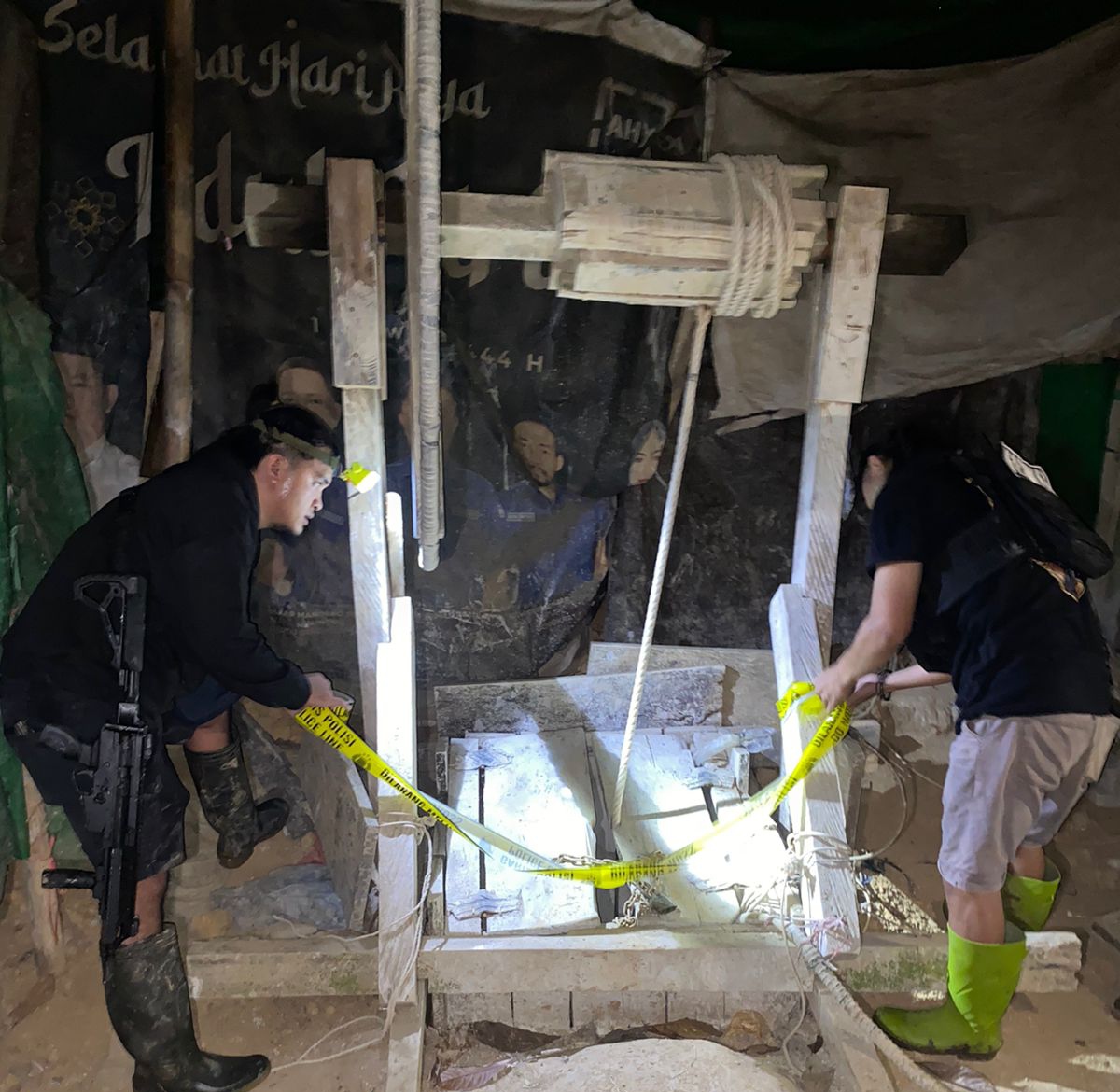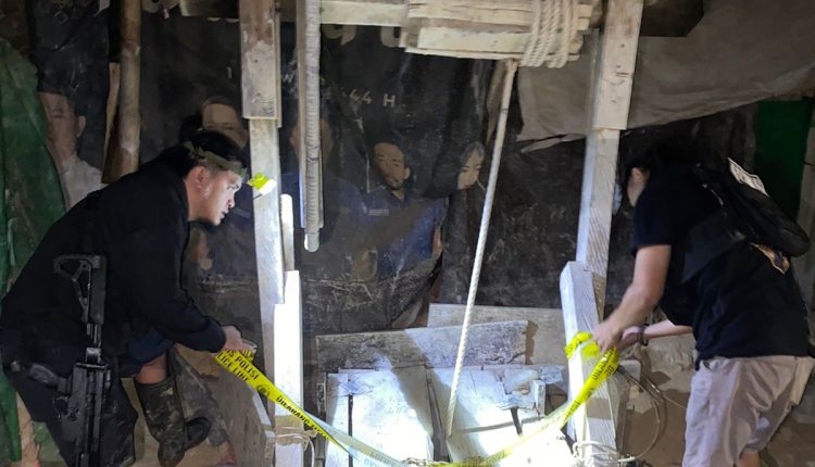Pantauan di lapangan menunjukkan, sejumlah lubang tambang yang berada sangat dekat hanya berjarak 2 meter dari area berpolice line atau garis polisi yang otomatis melakukan penjebolan pada lobang yang di police line