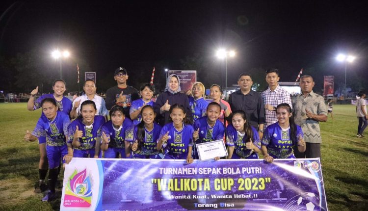TOPIKBMR.NEWS, KOTAMOBAGU — Wali Kota Kotamobagu, Ir. Hj. Tatong Bara membuka secara resmi Turnamen Walikota Cup Sepak Bola Putri se – Bolaang Mongondow Raya (BMR), yang dilaksanakan di Lapangan Olahraga Kelurahan Pobundayan, Minggu (13/8/2023).