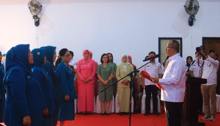 TOPIKBMR.NEWS, KOTAMOBAGU – Pj. Wali Kota Kota Kotamobagu, Dr. Drs. Hi. Asripan Nani, M.Si, mengukuhkan Ketua dan Pengurus Tim Penggerak PKK Kota Kotamobagu untuk masa bhakti 2023-2024, yang berlangsung di Aula Rumah Dinas Wali Kota, Rabu 11 Oktober 2023.