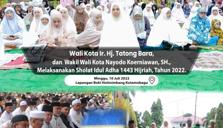 TOPIKBMR.NEWS,KOTAMOBAGU– Wali Kota Ir Tatong Bara bersama Wakil Wali Kota Nayodo Koerniawan SH, menunaikan shalat Idul Adha 1443 Hijriah di lapangan Boki Hotinimbang Kotamobagu, Minggu 10 Juli 2022.