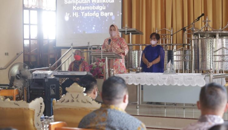TOPIKBMR.NEWS,KOTAMOBAGU —Wali Kota Kotamobagu, Ir. Hj. Tatong Bara, menghadiri Ibadah Kebaktian Sabat Gereja Masehi Advent Hari Ketujuh (GMAHK) Jemaat Tumobui, Sabtu (18/12), di GMAHK Tumobui, Kecamatan Kotamobagu Timur, Kota Kotamobagu.
