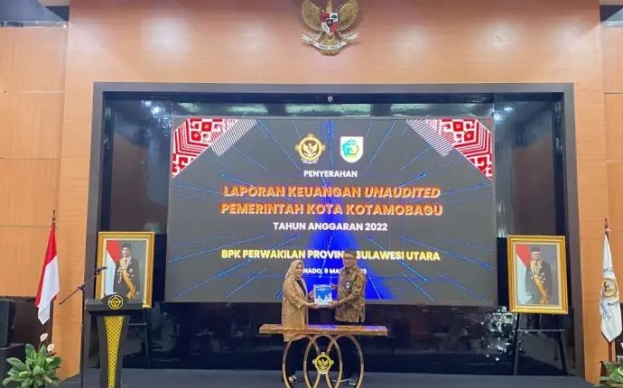 TOPIKBMR.NEWS, KOTAMOBAGU – Wali Kota Kotamobagu Ir. Tatong Bara, menyerahkan Laporan Keuangan Pemerintah Daerah (LKPD) Unaudited Pemerintah Kota Kotamobagu Tahun Anggaran 2022, Kamis (9/2/2023), di Gedung BPK RI Perwakilan Sulawesi Utara, Jalan 17 Agustus Manado.