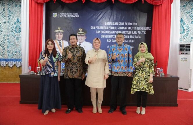 TOPIKBMR.NEWS, KOTAMOBAGU — Wali Kota Kotamobagu, Ir. Hj. Tatong Bara membuka Sosialisasi Cara Berpolitik dan Peraturan Pemilu, Seminar Politik Berkualitas dan Sosialisasi Program Studi Ilmu Politik Universitas Hasanuddin – Makassar, Minggu (23/7).