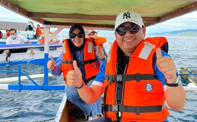 TOPIKBMR.NEWS, KOTAMOBAGU — Wali Kota Kotamobagu Ir. Tatong Bara dihari kedua kunjungan kerja ke Kabupaten Bone Bolango, Provinsi Gorontalo, Kamis (2/2/2023), diajak Bupati Dr. H. Hamim Pou, S.Kom, MH, ke destinasi wisata Pantai Botubarani.