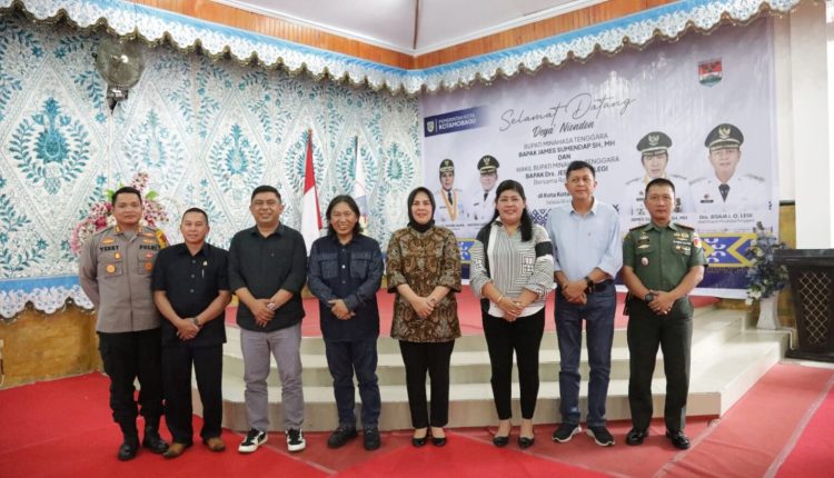 TOPIKBMR.NEWS, KOTAMOBAGU — Wali Kota Kotamobagu, Ir. Hj. Tatong Bara menerima kunjungan kerja Bupati Kabupaten Minahasa Tenggara, James Sumendap., S.H., M.H., dan Wakil Bupati Drs. Jesaja O. Legi, di Aula Rumah Dinas Wali Kota, Selasa (18/7).